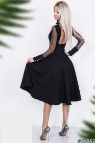Изысканное платье-миди А-кроя для торжественных и важных мероприятий.Платье А-кроя с струящейся юбкой длиной ниже колена.Роскошный вырез-каре на спинке эффектно демонстрирует спинку. Завершает образ эффектный длинный рукав из прозрачной микросетки на широкой манжете,декорированной изящными пуговками. Платье представлено в нескольких эффектных расцветках:черной,марсала,красный,бутылочный и розовый
